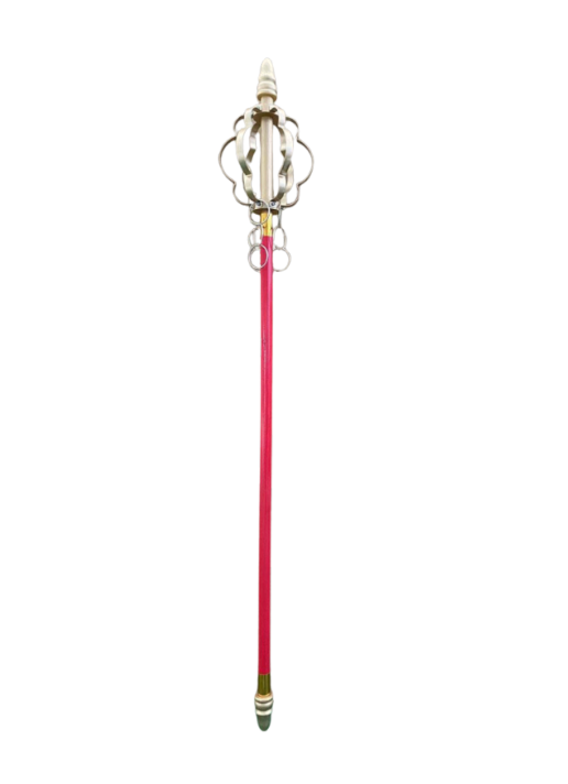 儀式用としてだけでなく、日常使いの杖としても適しており、長く愛用できる逸品です。格調高いデザインの錫杖は、特別な場にふさわしい存在感を放ちます。
