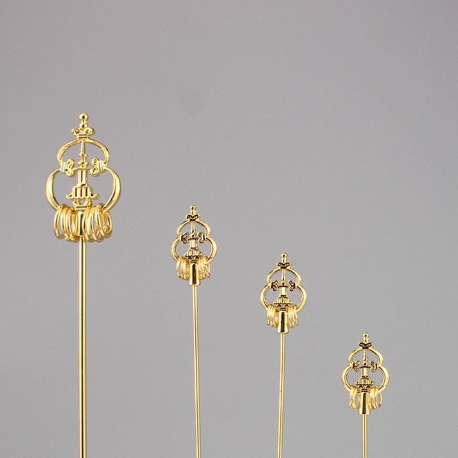 杖の頭頂部には如意宝珠と環飾りを組み合わせた精巧な装飾が施されており、仏具としての格式を備えています。