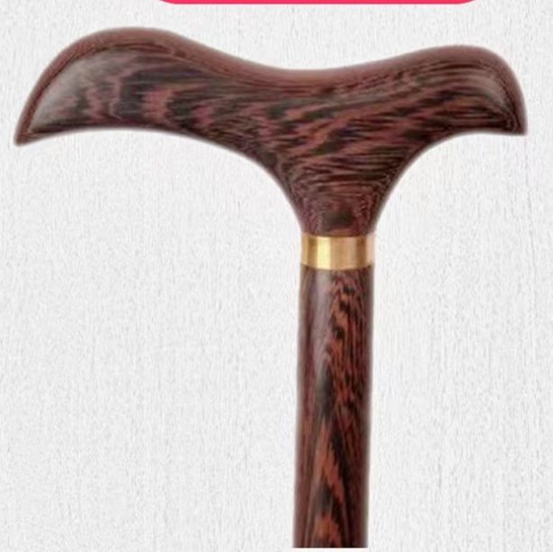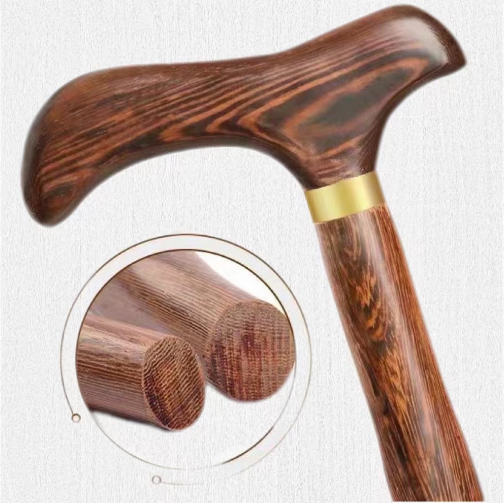 天然の鶏翅木を使用した高級感あふれるウォーキング杖です。 美しい木目が特徴的で、手に馴染む滑らかな曲線のハンドルが握りやすさを実現しています。 金属リングがアクセントとなり上品な印象を与えます。 杖先には防滑ゴムが付属しており、雨の日でも安心してご使用いただけます。 軽量で丈夫な一本杖は日常のお出かけから散歩まで幅広くお使いいただけます。