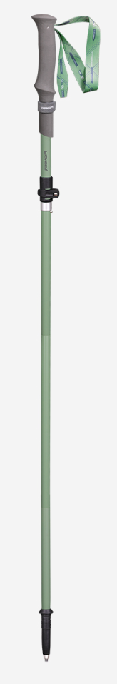 握りやすいグリップと調節可能なストラップで快適な使用感を提供する登山の杖です。